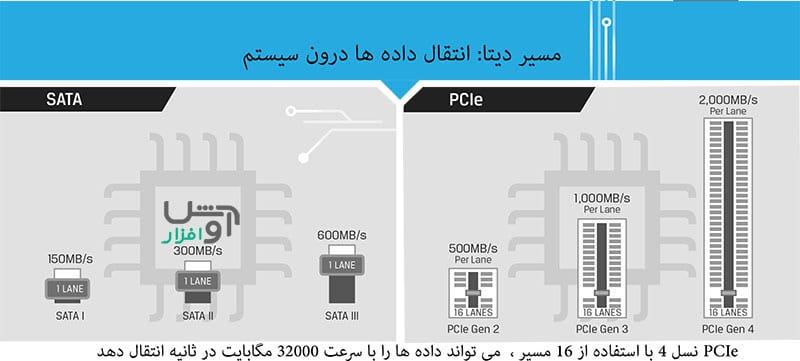 سوکت های PCle بیش از 25 برابر از پورت SATA داده ها را انتقال می دهند.
